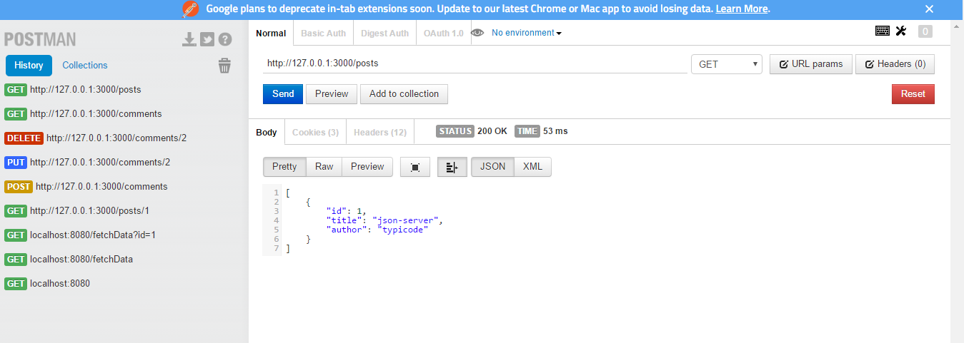 { "id": 1, "title": "json-server", "author": "typicode" }